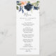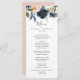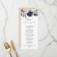 Este cartão de janto de casamento branco e com flores marinhos é perfeito para um casamento floral. O clássico e elegante design apresenta marinho de aquarela azul e flores cor-de-rosa pinceladas. Este menu pode ser usado para recepção de casamento, janto de ensaio ou qualquer evento.