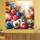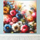 Trabalho de arte floral brilhante e corajoso. Flores vermelhas, azuis, brancas e laranja.