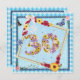 Um convite de aniversário divertido com cores felizes, flores e borboletas.Um cartão impresso que tem uma aparência de artesanato. Os números são feitos de flores. Veja toda a gama de convites e cartões na minha loja.