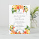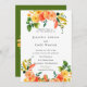Os convites florais elegantes para o verão ou casamentos outono mostram seus detalhes destacados por cima e por baixo com bordas de rosas de repolho de cor aquosa e verde em cores de pêssego, ouro, laranja e verde. Cartões invertidos para a laranja do outono com flores aquáticas recobertas no centro.