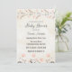 Convite para chá de fraldas com flores cor-de-dandelion cor-de-rosa design e fundo de aquarela.