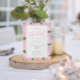 Este belo design apresenta flores de hydrangea cor-de-rosa e seu texto personalizado em um convite de tamanho menor. Use o formulário modelo para adicionar suas informações.
