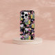 Mala-mala-porta iPhone 14 Pro Máx. Flores do Jardim Bonito do País em Fundo Roxo