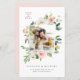 Anuncie sua data de casamento com este cartão de data personalizável. Apresenta um buquê floral de cor d'água de rosas, dahlias e peonias rosas, rosa e brancas. Personalize adicionando seus detalhes. Esta foto salva o anúncio de data é perfeita para casamentos de verão e primavera.