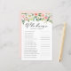 Quem conhece melhor a mãe? Adicione este cartão de jogo de chá de fraldas personalizável e divertido ao seu evento. Apresenta a terra de cor d'água floral de rosas rosa e brancas, dahlias e peônias com acentos verdes. Personalize este jogo de chá de fraldas floral bonito adicionando suas próprias perguntas. Este jogo de chá de fraldas de aquarela é perfeito para chás de fraldas de primavera e jardim.