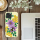 Bela bonita numa flor de cor lavanda com pente de mel e fundo amarelo.