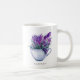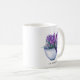 Caneca floral botânica e caprichosa com um buquê de aquarela de flores de lavanda dentro de uma xícara de chá. Personalize adicionando nomes ou uma frase curta. Esta caneca de lavanda será perfeita como um presente personalizado.