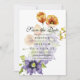 Casamento Elegante de aquarela, exceto o cartão de data com um arranjo floral de primavera, como tulipas, forsythia e clematis. Seus detalhes estão sobrepostos em um quadrado branco transparente.