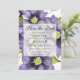 Casamento Elegante de aquarela, salve o cartão de data com um arranjo floral de primavera com clematis. Seus detalhes estão sobrepostos em um quadrado branco transparente.