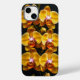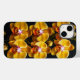 Orquídeas amarelas, especificamente um grupo de orquídeas Phalaenopsis. As flores apresentam padrões intrincados em suas pétalas, com tons de amarelo e laranja criando uma aparência vibrante. Cada flor tem uma porção central que brilha com um delicado tom rosado, realçando sua beleza contra um fundo escuro. O caule da orquídea é adornado com vários botões, indicando que mais flores ainda estão por abrir. A composição geral destaca a elegância e a complexidade dessas flores, tornando-a uma disposição visualmente agradável.