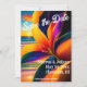 Belo anúncio "Save the Date" apresenta um impressão de arte de pôr do sol, floral tropical brilhante e brilhante | AI cria fantasia surreal arte digital.