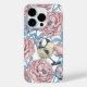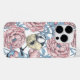 Flores de pénia desenhada à mão e pássaros-tetas em cor rosa e azul pastel. Padrão de vetor sem costura feito no Illustrator.
