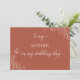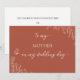 Honre a mulher mais importante da sua vida com este cartão maravilhosamente desenhado "Para a minha mãe no meu dia de casamento", com flores delicadas de campo e tons românticos e suaves. Essa emocionada manutenção é a maneira perfeita de expressar sua gratidão, amor, e apreciação para sua mãe em um dos dias mais significativos de sua vida. A frente mostra um design floral e uma tipografia elegante, enquanto a parte de trás oferece espaço para uma mensagem totalmente personalizável, permitindo que você compartilhe seus pensamentos pessoais, memórias, ou uma nota especial que ela vai tesourar para sempre. Ideal como presente no dia do casamento, parte de um momento de preparação, ou guardar Uma bela mistura de sentimentos e estilo, esta carta é um símbolo eterno de amor que ela nunca esquecerá.
