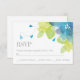 Flores de primavera azul delicadas e florais Respostas RSVP de casamento floral ou cartão de resposta com flores bonitas em tons de azul, aqua, tartaruga e azul marinho, folhas em verde e texto em cinza. Esta elegante e moderna design faz parte de um jogo de casamento e é uma modelo perfeita e personalizável para um casamento de primavera ou verão.