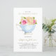 Junte-se a nós para uma festa de chá! Convide familiares e amigos para o seu evento com este convite de festas de aposentadoria personalizável. Apresenta a ilustração aquarela de uma equipe com um buquê rosa. Personalize adicionando seus detalhes. Este convite para aposentadoria floral é perfeito para eventos de primavera e jardim.