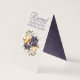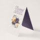 Bonito levante a carta de barraca de mesa reservada feita em marfim texturizado e flores roxas e amarelas. O texto colorido roxo está pronto para personalizar para ler o que você quer. A dentro do cartão é feita em uma bela damasco roxa coordenadora.