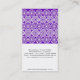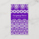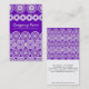 Cartão de visita divertida, moderna e retrô com padrão, apresentando flores brancas e bonitinhas, doidamente moldadas em um fundo roxo. Padrão bonito e feminino para aqueles que adoram crochê, tricô e bordado. Elegante e presente fácil de personalizar com seu texto, nome, monograma ou iniciais.