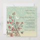 Este victorian que 5.25x5.25 à moda o casamento vintage convida tem um fundo azul e de creme macio do damasco com um ramo que tenha lotes de flores coloridas coral no inferior esquerdo com um pássaro que voa perto do ramo. No direito, você pode facilmente personalizar a informação da cerimónia de casamento. Na parte traseira, há alguns ramos marrons com as flores corais e o fundo do damasco. No centro, você pode personalizar os nomes dos noivos.