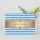 Listras coloridas, azuis e brancas, com elegantes convites de festas de aniversários florais de banda de diamante de ouro.