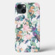 Flores rosas e florescentes roxas e aves primavera, pintura botânica, com coelhos coloridos, pássaros azuis, amarelos, flores magnólias brancas e cor-de-rosa, pequenas flores amarelas e flores brancas, várias formas de folha verde, padrão de temas botânicos com fundo branco sólido. Uma arte única de botânica.