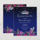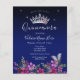 Lindas estrelas brilhantes na fronteira superior. Design elegante e de tendência com tipografia de rico. Todo o texto é ajustável e fácil de mudar para as necessidades do seu próprio partido. Excelente elegante Quinceañera design. Disponível em cores diferentes. Bela princesa tiara com arranjo floral. Borboleta azul com borboleta floral inferior. Diferentes cores de fundo disponíveis.