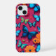 Flores brancas e borboletas, cores vibrantes, imagem digital.