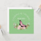 O design elegante apresenta buquê de spray rosa-d'água cor-de-rosa-d'água com borboleta rosa adicionada sobre fundo verde. Adicionar nome e data do casal ou outra mensagem especial