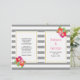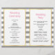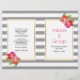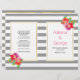 Flores e cinzas cor-de-rosa e roxas, listras brancas, cerimônia de casamento dobrada e programa de festas. Lindas flores tropicais adoram esta elegante e moderna design de casamento floral. Seu texto é colocado em quadros brancos com contornos dourados. Escolha o papel de valor à medida que ele se dobra bem e dobre-o à metade manualmente.