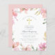 Primeiro convite popular elegante e feminino, com flores rosa pintadas à mão e uma cruz cristã falsa de ouro. Um convite para a comunidade floral sagrada, perfeito para qualquer tema. Como parte da seleção orçamentária no Zazzle, esta folha não é um tamanho de convite padrão e a qualidade do papel não é tão boa, se você quiser este design em um cartão de convite você pode encontrá-lo em nossa loja ou usar o Zazzle Make Machine para transferi-lo para o produto de sua escolha (isto deve aparecer logo acima desta descrição). Veja o link de coleção nesta página para mais designs!