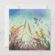 Uma bela cena de flores silvestres vibrantes e coloridas no conjunto de ventos em frente a um céu azul e verde com estrelas.