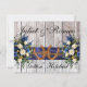 Esta design tem um rústico elegância, mantendo-a um tema simples, com um fundo de madeira de galha com fita azul, ferraduras e buquês de flores silvestres com nós. Estes convites são excelentes para o país ou para o casamento externo. Alterar as fontes pode criar um convite mais elegante ou rústico. Projetado para coordenar com a coleção "Gettin' Hitched - Horsferes, Ribbon & Lace". Para alterar os detalhes, clique em "Personalizar". Para mover o texto ou alterar o tamanho, a fonte ou a cor do texto, clique em "Clique para personalizar mais"