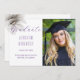 Este anúncio de fotografia de graduação apresenta um design floral sutil e elegante com "Formando" sobreposto num roteiro moderno. Personalize com sua foto de formando, nome e informações da escola ou mude o texto para ser um convite de festa de formatura. A parte de trás apresenta o design floral moderno nos cantos e os detalhes do evento de graduação. Parabéns ao formando!