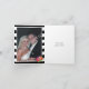 Flores em aquarela e cartão de nota de agradecimento de casamento com listras pretas e brancas. Notáveis flores tropicais em aquarela em rosa e roxo, combinadas com um padrão listrado em preto e branco, adornam este lindo cartão. Sua foto está no interior.