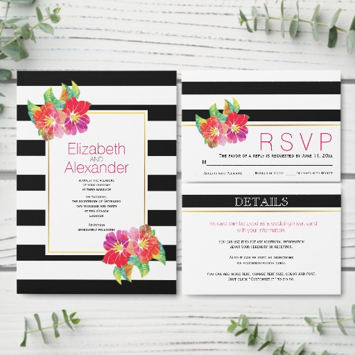 Watercolor flowers and black white stripes weddingCriado por Modern Designs