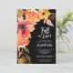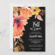Lindas flores e folhas de outono em fundo preto são apresentadas nesses convites de chá de panela de outono. CORRESPONDENDO a itens na nossa loja.