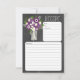Cartão de receita perfeito para um chá de panela country ou talvez você simplesmente adore Potes de Mason! Um elegante Pote de Mason repleto de flores em tons de Roxo BERINJELA Claro e Escuro com Margaridas Brancas e flores silvestres. Um Fundo de Quadro Negro é usado. Se tiver alguma dúvida sobre este design ou quiser uma mudança de cor, por favor me envie um e-mail paula@labellarue.com Verifique também os cartões de Conjunto de Noivado, CONVITE, RSVP, RECEPCÃO e ASSENTOS DOS CONVIDADOS para combinar!