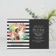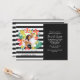 Um dramático convite fotográfico com flores tropicais coloridas e folhagem contra fundo de faixa branca e preta. <br/>() A placa é fácil de personalizar com o seu texto, fonte, cor da fonte, opções de forma de papel e escolha de seis tipos de papel.<br/>() Não exatamente o que você está procurando? Todos os nossos produtos podem ser personalizados para atender às suas necessidades sem custos adicionais.<br/>() Basta entrar em contato conosco em askpixieprints@aol.com.<br/>() Coordenando os produtos disponíveis: Apenas nos pergunte!