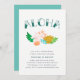 Aloha! Jogando um havaiano ou luau no janto de boas-vindas do casamento antes do grande dia? Convide amigos e família com nossos convidados de recepção de chic na ilha, apresentando um buquê de flores tropicais em tons elegantes de praia, com "aloha" em letras escuras curvas. Cartões à volta de aqua sólida.