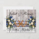 Esta design tem uma rústica elegância, mantendo-a um tema simples, com um fundo de madeira com fita azul, rendas, ferraduras notoriadas e buquês de flor selvagem. Estes convites são excelentes para o país ou para o casamento externo. Alterar as fontes pode criar um convite mais elegante ou rústico. Projetado para coordenar com a coleção "Gettin' Hitched - Horsferes, Ribbon & Lace". Para alterar os detalhes, clique em "Personalizar". Para mover o texto ou alterar o tamanho, a fonte ou a cor do texto, clique em "Clique para personalizar mais"