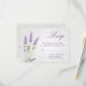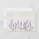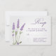 Lindas flores roxas lavandas de Casamento Respondem com cartão plano. Na parte de trás do cartão - flores lavandas sobre fundo de madeira leve.