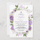 Flores Lilás Roxas Elegantes Convite Baptism