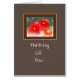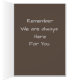 Uma pintura artística e vibrante de flores num cartão de condolências. O texto diz "Pensando em si". O texto no interior diz "Em tempos como este, lembre-se que estaremos sempre aqui para si". Este cartão também é apropriado para votos de melhoras.