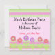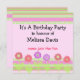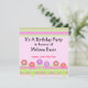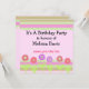 Um divertido convite de aniversário com fronteiras de listras cor-de-rosa, verdes e mauve. Flores em tons de rosa e mauve com caules e folhas verdes. Um design de aniversário meticuloso. Personalize com todas as suas informações conforme desejado.