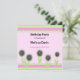 Um divertido convite de aniversário com fronteiras de listras cor-de-rosa e verdes. Flores modernas e lisas com caules e folhas verdes. Personalize com todas as suas informações conforme desejado.