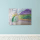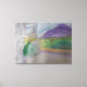Maçãs pastéis de púrpura, massa, azul e verde juntam-se para fazer esta charmosa imagem de aquarela "Flor no Mural". Bonito flores silvestres em um jarro sentam-se na janela enquanto a cortina flutua em uma brisa quente de verão. A janela aberta olha pelos campos e colinas distantes de uma cena de verão ensolarada, convidando a beleza do mundo natural dentro.