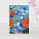 Flores no cartão de nota azul do fundo