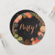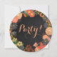Flores no Convite de festas redondo de quadro negro. Adicione facilmente informações de volta. Para uma festa de aniversário ou qualquer festa que você escolher!