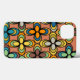 Esta capa de telefone tem um design de ovais que formam flores nos anos 70 com cores retrorreflectoras.