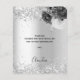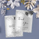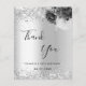 Um cartões de agradecimentos para um aniversário de 50 anos (ou qualquer idade). Um fundo de olhar mal prateado. Decorado com flores, flores e brilho sujo, faíscas. À frente, um grande texto escrito à mão e o texto: Obrigado, seu texto, título e uma data. Voltar: personalize e adicione seu nome e nota de agradecimento.
