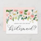 Bonito cartão de proposta da madrinha de tema floral. Peça à família e aos amigos que façam parte do seu casamento com este cartão personalizado "Você será minha dama de honra". Apresenta a terra floral de cor d'água de rosas brancas e rosa-pinceladas e verde-claro. Personalizar adicionando um nome e uma mensagem
